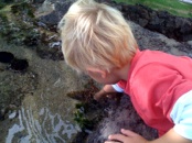 Outside the reef exhibit, is a saltwater Touch Pool with starfish, wana (urchins) and sea cucumbers. I visit tide pools all over Maui, all of the time, and I never see starfish that big! I love their bump, bumps, bumps.