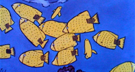All those exhibits are fun, but nothing beats the grand finale, just past the dolphin fountain. It starts with whales (kohola) and monk seals (‘ilio holo i ka uaua) and then you think the glow-in-the-dark jellyfish tank is the coolest thing you’ve ever seen... until you turn the corner to a 750,000 gallon tank. It’s better than amazing, with more sharks, rays, and fish than you can count. They’re all from Hawaii and seriously, it’s not hundreds, but thousands and most of them are bigger than me and you! In the glass tunnel, they swim right over your head! I could spend the whole day in there.